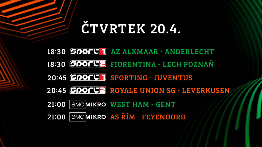 20.4. 2023 – Na Sport1, Sport2 a AMC Mikro můžete sledovat boje o postup do semifinále Evropské ligy a Evropské konferenční ligy UEFA. Velmi atraktivní souboj spolu sehrají West Ham a Gent. Kladiváři se po remíze z prvního utkání chystají na rozhodující krok do semifinále. Dokáží proti Gentu uhájit domácí neporazitelnost v letošní sezóně Konferenční ligy? Ve složitější situaci se nacházejí fotbalisté AS Řím. Ti musí dohánět jednogólové manko, ale na svém stadionu jsou letos nesmírně silní. Dokáže Feyenoord oplatit slavnému AS porážku z loňského finále Konferenční ligy? Diváci v Česku a na Slovensku si mohou oba zápasy vychutnat s originálním anglickým komentářem živě v aplikaci AMC Mikro již dnes od 21:00. Další skvělá utkání uvidíte v přímých přenosech také na Sport1 a Sport2.